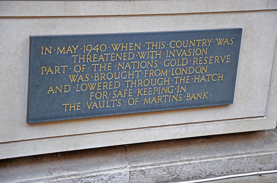 Plaque on the side of Martins Bank Building.