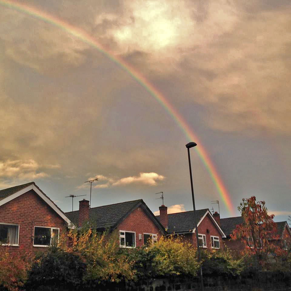 | A rainbow over the housing estate built on the former school site. The photo was taken from outside Lowlands. |