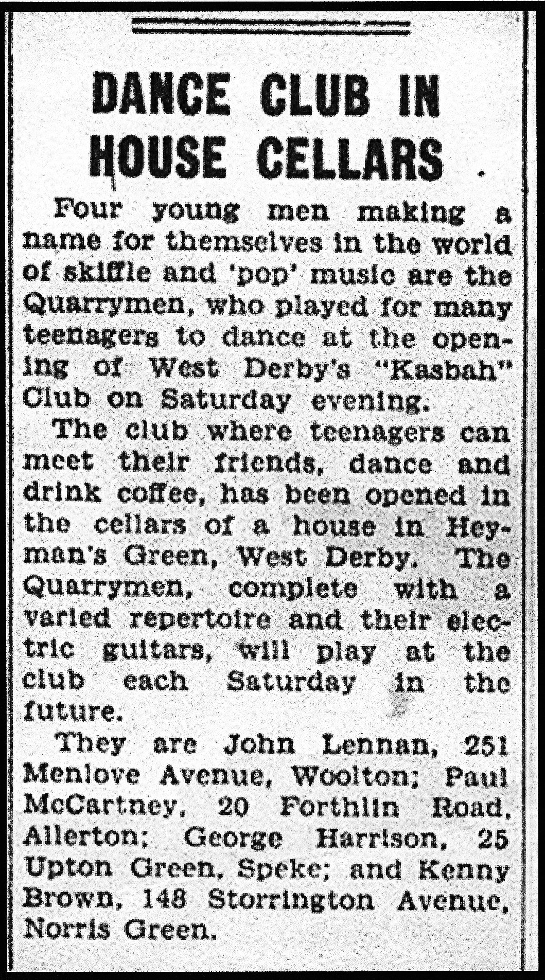 | This is a newspaper report following the opening of the Casbah on Saturday the 29th August 1959. Note the misspelling of John's name. |